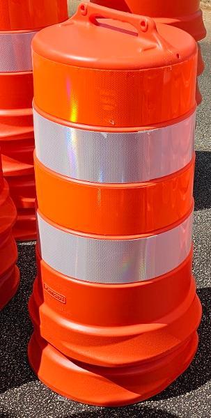 Plasticade Commander Traffic Drum High Density with 6in Diamond Grade Stripes Use with tire ring- 4 - 6" DG MASH Accepted and meets MUTCD Standard...